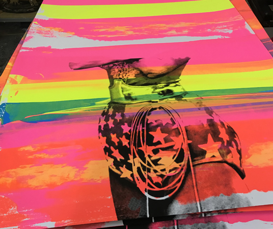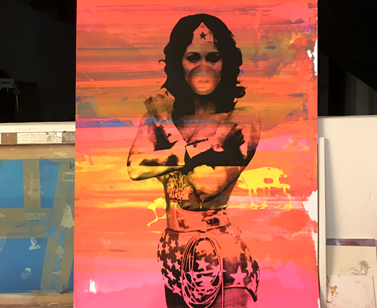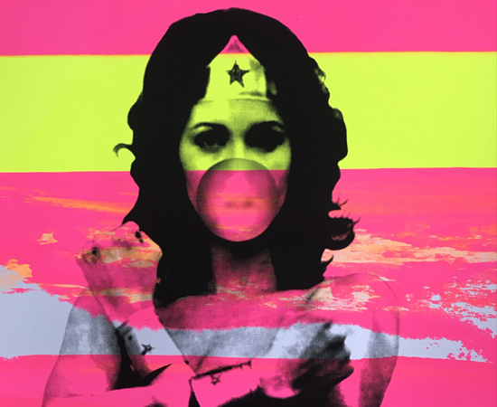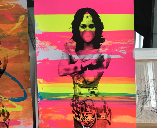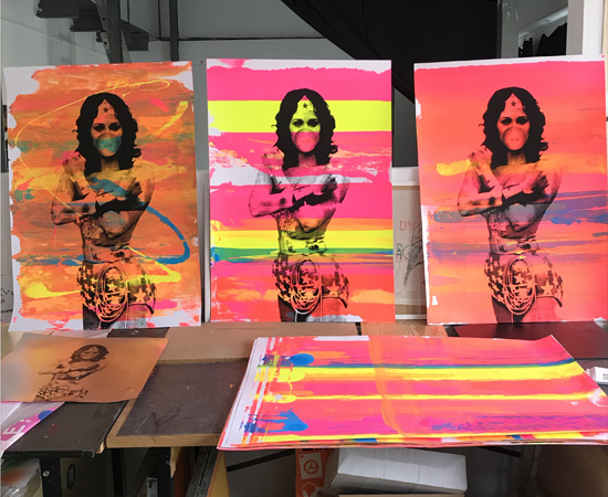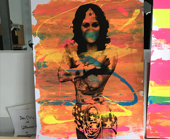 BUBBLE HEROINE Multicolour 2021 Multicolour Iris screen print on 300 gsm Gmund carton Unikate / various colours. signed. dated. handstamped and -embossed. handprinted with ♥ by the artist 70 x 100 cm Similar Work BETTER BE GOOD MULTICOLOUR Testbild No 2 Testbild No 1