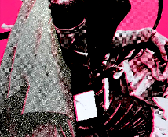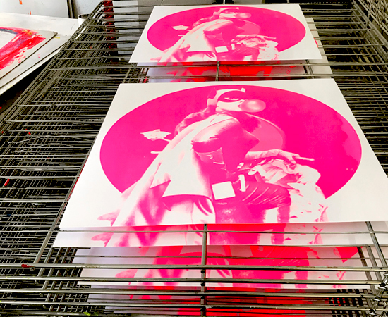 BUBBLE TROUBLE pink 2020 2 colour screen print with silver glitter on top on 300 gsm Gmund carton Strictly limited Edition of 10. signed. dated. handstamped and -embossed. handprinted with ♥ by the artist 50 x 50 cm 23 x 23 cm / Edition of 50 Similar Work ANALOG ALPHABET 3D Barbarella LIPS colours