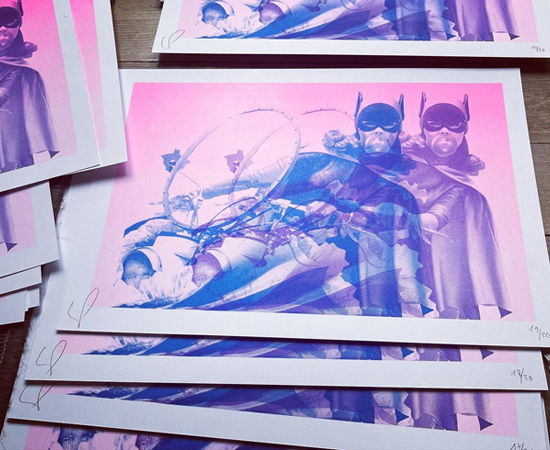 Dubble Bubble Riso 2022 3c Risoprint on Metapaper Extrarough white 175 g Limited Edition/30. Signed Artprint printed with ♥ by Herr & Frau Rio DIN A3 Similar Work Collabo Eliot the super & Laura Piantoni für Munich Pop Art 2018 HICKUP LEGS GANESHA GOOD KARMA