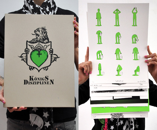Behind the idea of the Königsdisziplinen Edition is photographer and printer Laura Piantoni who invited for the first time in 2006 her artist friends to create one art work for the Königsdisziplinen. For the second edition in 2012 twelve international artists got invited.