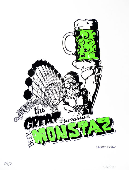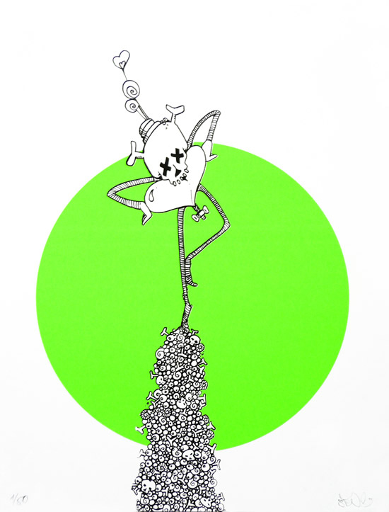 2 colours / Neongreen and Black on 370 gsm Bristol carton, Format 29 x 38 cm