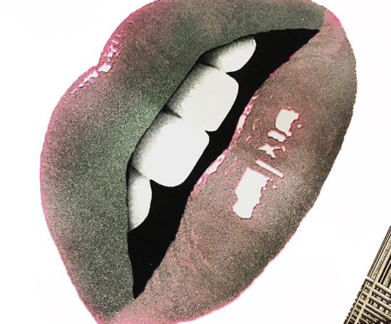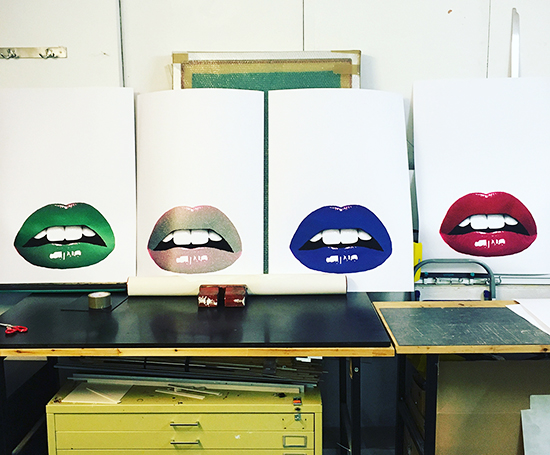 LIPS colours 2019 2 colour screen print with silver, blue, green or red glitter on top on 300 gsm Gmund carton Strictly limited Edition Artist Prints/ signed. dated. handstamped and -embossed. handprinted with ♥ by the artist 50 x 70 cm 70 x 100 cm Similar Work LIPS Allover Gold / Silver KALI Wham Bam Canvas PARADE canvas