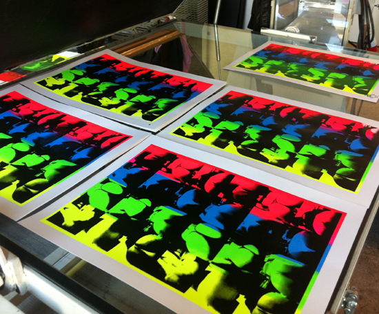 PARADE Multicolour PARADE MULTICOLOUR Multicolour screen print on 380 gsm Bristol carton 2012 Edition of 12 signed, dated and numbered 2013 Edition of 20 signed, dated and numbered handprinted with ♥ by the artist 65 x 50 cm Similar Work PARADE canvas BUBBLE HEROINE Multicolour Triple