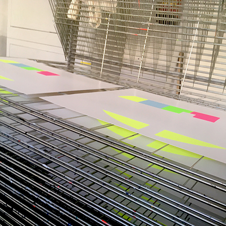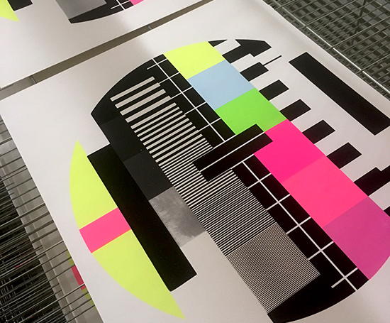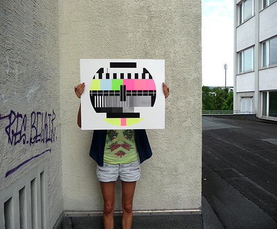 Testbild No 1 2017 7 colour screen print on 380 gsm Bristol carton Strictly limited Edition of 10/ signed. dated. handstamped and -embossed. handprinted with ♥ by the artist 50 x 60 cm Similar Work Barbarella Triple LIPSTICKS 7 Gold / Silver