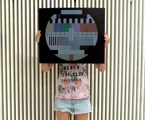 TESTBILD NO 3 2018 3 colour screen print on 350 gsm Gmundpaper Strictly limited Edition of 17/ signed. dated. handstamped and -embossed. handprinted with ♥ by the artist 50 x 60 cm Similar Work PIZZA PASTA POP silber MIAU MULTICOLOUR BETTER BE GOOD